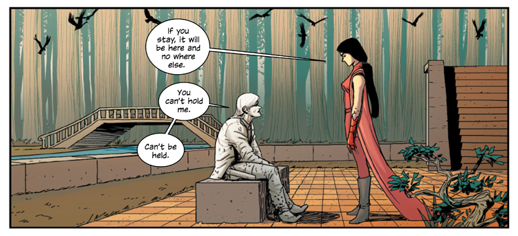 As a beginning, The Promise does enough to get me interested in reading more of East of West. I’m more curious than engrossed at this stage, which isn’t a bad thing – it also happened to me with Manhattan Projects – and I’d be interested to see where we go next. It’s got just enough weird and unpredictability in its makeup that it could be an immensely fascinating story, and given its narrative and artistic heritage I would expect nothing less than a great read later down the track. If nothing else, it’s creative enough that it’ll help wash the taste of DC’s recent failings out of your mouth.