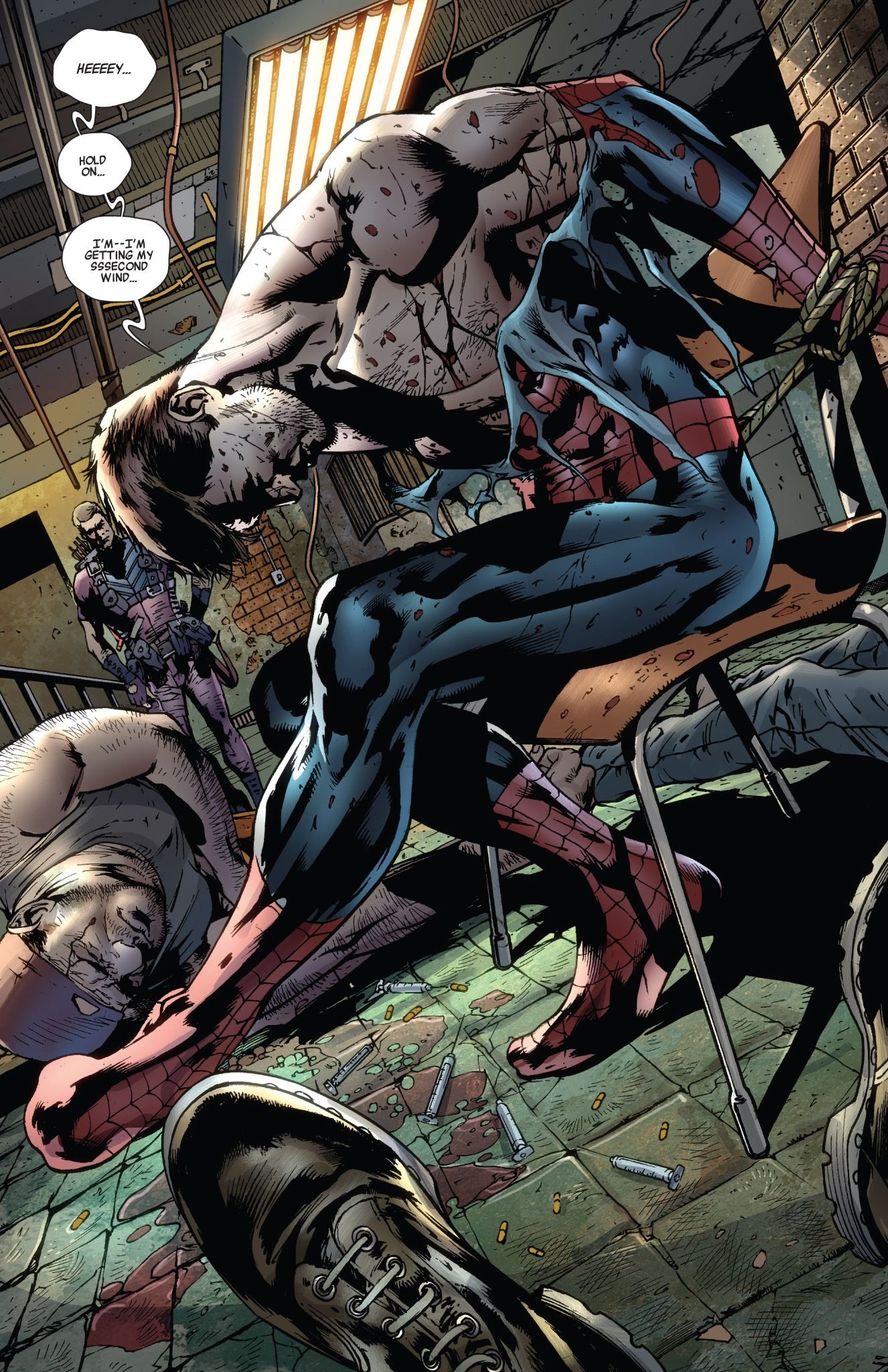 dubious. It’s logical to assume the book takes place during Marvel’s NOW! relaunch (at least, before Wolverine turns into a gorier Doctor Who), but the issue there is that too much of the current Marvel world isn’t represented in the story. Many Avengers uniforms are either completely different to their normal attire or are the older, pre-relaunch outfits like Captain America’s fish-scale costume or Spider-Man’s blue and red getup rather than the Superior black and red duds he’s rocking these days (and on that note, if it weren’t for the Superior Spider-Man back-up issue it’d be damn near impossible to tell if the Spidey we’re reading here is our good ol’ pal Peter Parker, or that octopus guy who’s hijacked his body for a bit). There’s few references to many of the recent events that have happened in Marvel NOW, so the story could very easily have just taken place in some cosmic nether-reality where an author’s attempt at auteur writing co-exists with whatever readership Rob Liefeld reckons he gets.