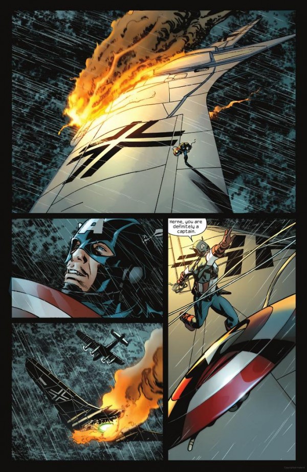Cap’s assertion that combat for a soldier never ends (hence the incredibly clever title). The problem with this is that very little weight is given to examining those struggles. Cap and Thor get flashbacks, Iron Man ruminates for about a page on his past as a formerly immoral weapons manufacturer, Wolverine has some Uncanny X-Force-influenced dialogue regarding the need to kill, and Black Widow has her usual “red ledger speech”-inspired script taken almost wholesale from the movie. For a book trying to inspire feelings of sympathy in us, as well as taking inspiration from other existing sources of canon, it’s a very uninspired piece narrative-wise.