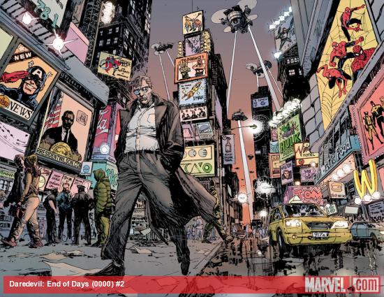 That said, this book is of no use to you if you’re not even a tad familiar with Daredevil’s curriculum vitae. Even people who’ve checked out Mark Waid’s recent run will get something out of it, albeit not as much as if you’ve read Miller, Bendis, Brubaker and Diggle in particular. This is a story written by and for devout fans, people who’ve experienced Daredevil’s trials and tribulations for the longest time. There’s quite a lot of reference to multiple past events that aren’t elaborated on for neophytes, so don’t pick this up expecting a gateway entry to Daredevil’s universe. I ‘spose the whole End of Days title is a bit of a giveaway that this isn’t a beginning.