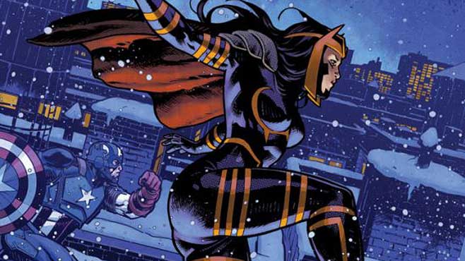 On that subject, dialogue’s either awful or just there. I had a hard time finding a Best Quote for below, since most of what’s said is either too plain to stand out or far too terrible to warrant remembering. There’s no subtlety to any of this; Cap’s dialogue after going back to his apartment and Guy Fawkes’ing his memorabilia is overly maudlin and contemplative. Nuke’s the Team America theme song with steroids and tight trousers. His Asian master Iron Nail thinks the Yankees are capitalist dogs that deserve the needle (or a bomb, y’know, whatever works). Jet Black is adjusting to life on Earth after stepping from her murderous father’s shadow, but also she’s grumpy at everyone. Characterisations are consistent for the returning players, but the nuance is gone. It’s disappointing, especially since his run on Uncanny X-Force has shown me Remender is quite capable of saying a lot by saying a little, letting either lack of extensive dialogue or combination of the written with the visual tell the story more than overlong jingoist exposition ever could.