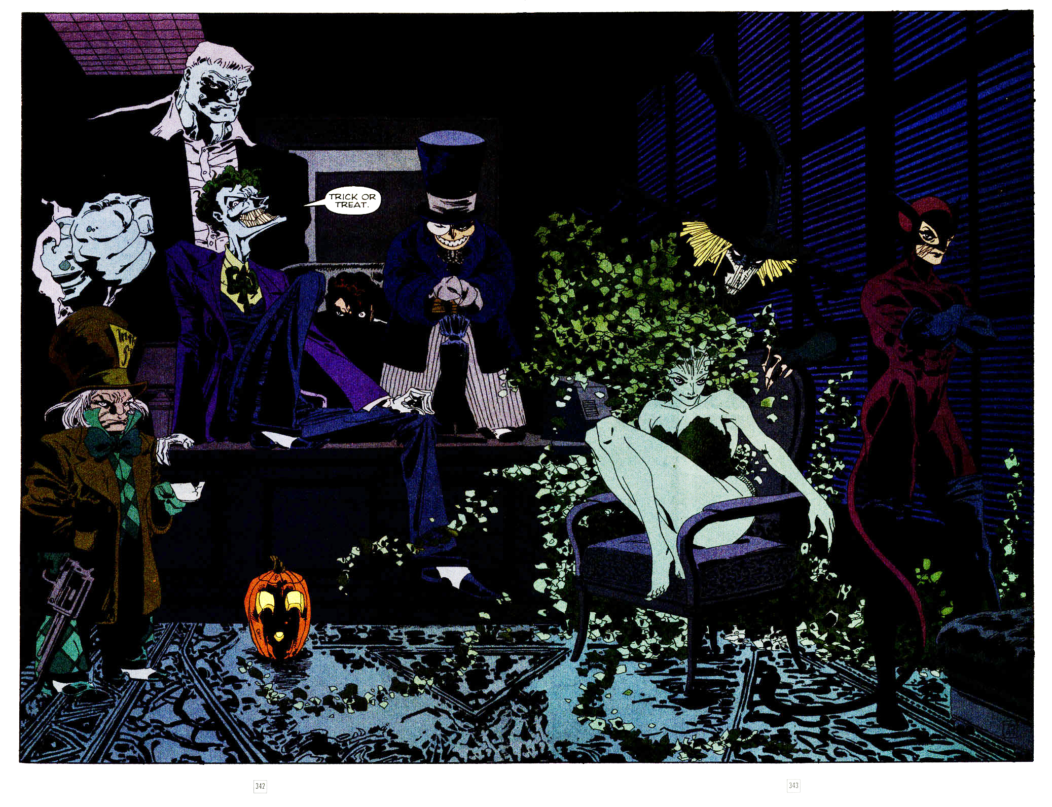 While it’s not as genre-defying or groundbreaking the same way The Killing Joke and The Dark Knight Returns were, The Long long halloween 4Halloween still holds a respectable spot on readers’ lists as not only a great story but a proper fleshing out of Harvey Dent’s backstory. The poor man’s journey from single-minded White Knight of Gotham to psychotically-twisted bipolar victim Two-Face is tragic, benefiting from the darker tone of the 90’s comic scene and the straight arrow of the narrative. Before this, the character of Harvey was never fully explored, or at least to the degree writer Jeph Loeb accomplished in this book, so seeing the pre-disfigured side of Gotham’s one-time prodigal son added a unique dimension to the general “Batman pursues a crim” story The Long Halloween employs as its spine.
