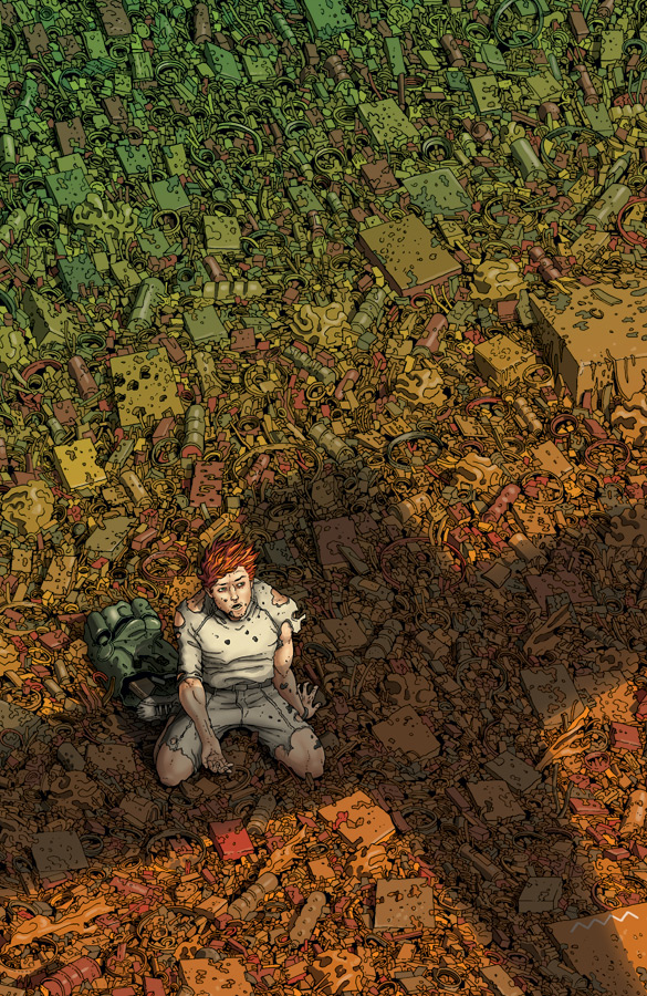 Also, the penultimate chapter of Rotworld ditches the artists mentioned above to use some illustrator we haven’t seen up until now, and the very distinct shift in art style is clunky and unnecessary. It’d be bad enough for an illustrator with completely different tone to appear randomly in the story, but it’s particular egregious as what is effectively the end of the story draws up. It’s a shame, because narratively that chapter’s pretty excellent.